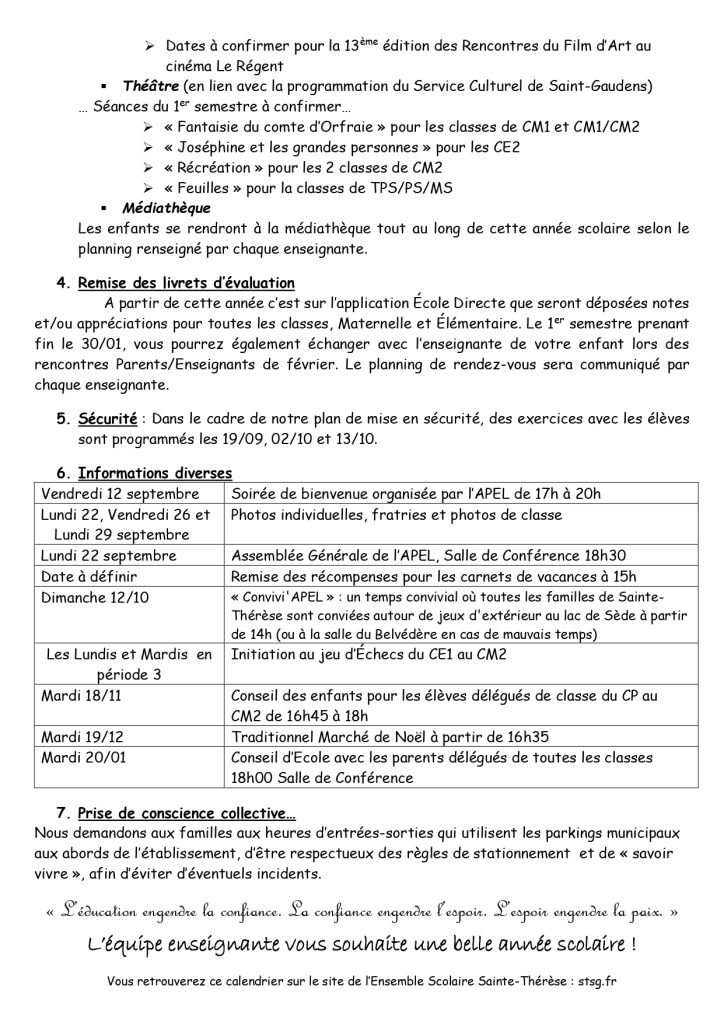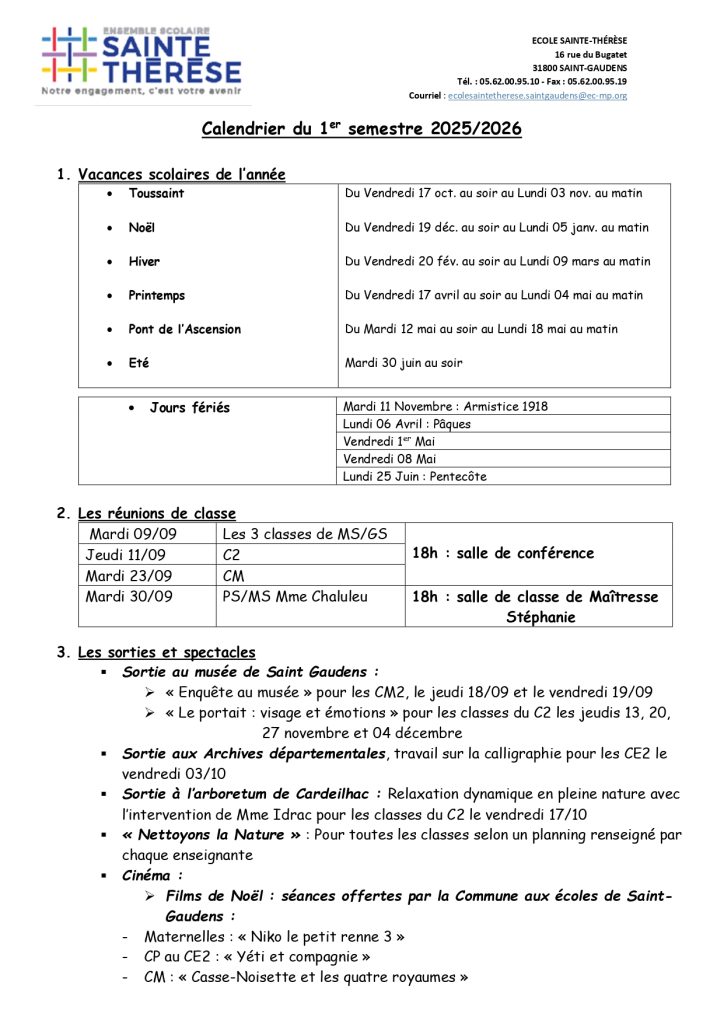 Nous demandons aux parents des classes maternelles de veiller à respecter les horaires.
